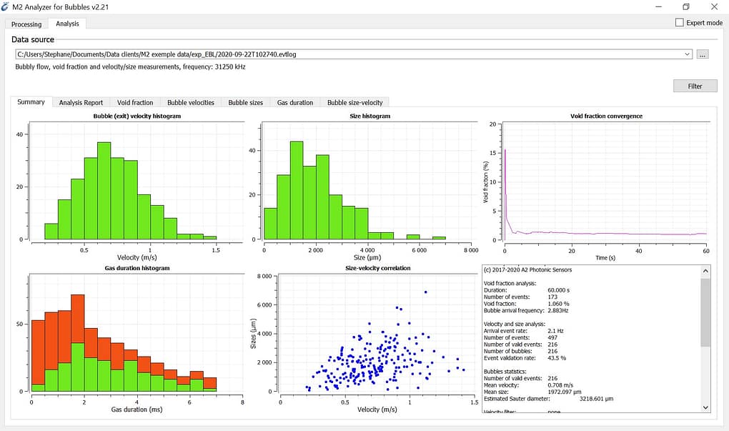 Based on an innovative technique called Optical-Fiber Doppler Probe (OFDP), the M2 system enables easy measurement of bubble size and velocity in very dense flows, bubble columns, pipes or other liquid-gas environments with no optical access